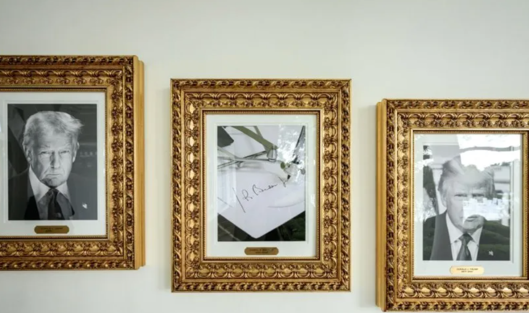Trump reemplaza retrato de Biden en la Casa Blanca con una firma automatizada, generando polémica
